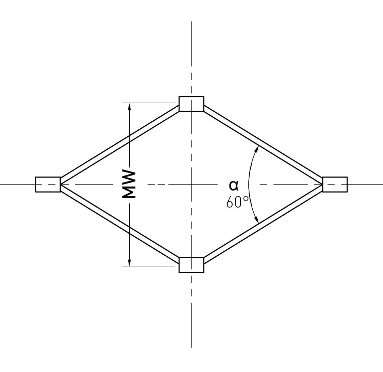 MW Mesh width (distance from center to center of ferrule) α Standard mesh opening 60 °
